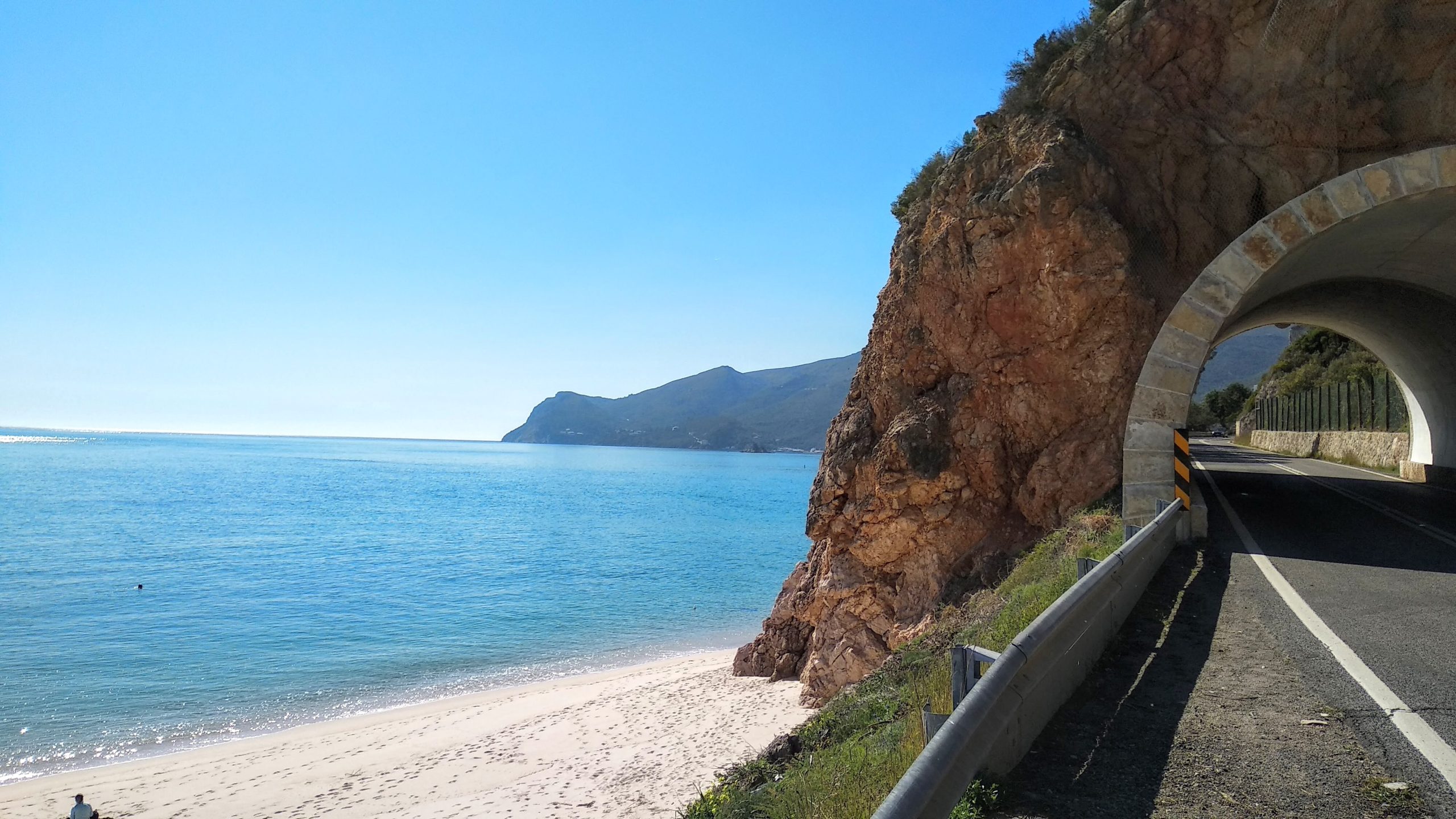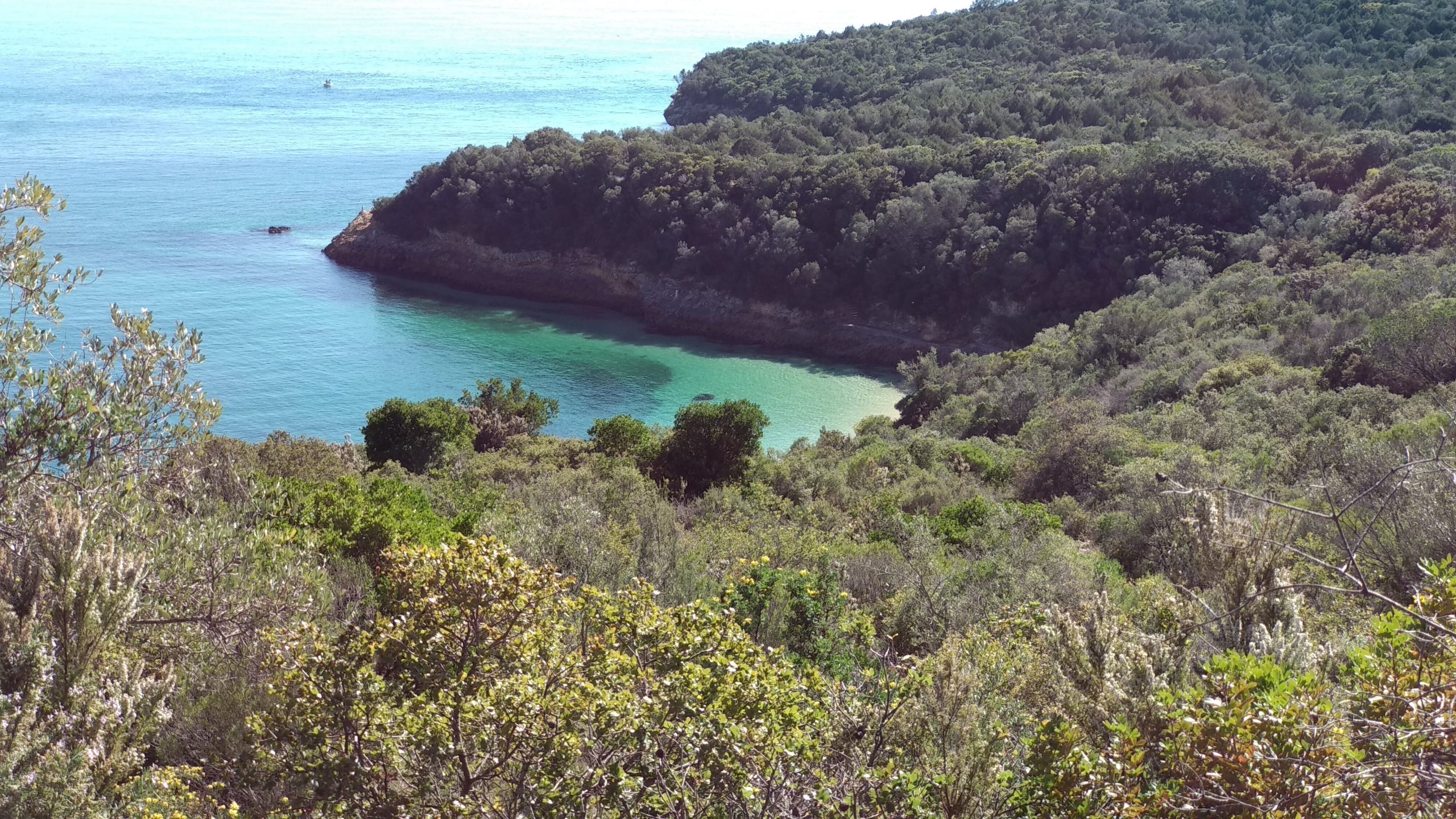 Die Straße erklimmt den Berg Formosinho (500 m über dem Meeresspiegel), um dann wieder steil nach Setúbal abzufallen. Wir besischtigen einige Strände wir Portinho da Arrábida (Praia do Creiro) und Praia da Figueirinha.